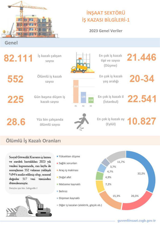 Şekil 1. 2023 Yılı İnşaat Sektörü İş Kazaları Genel Verileri [2]