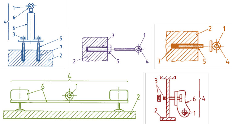 Şekil 6. Ankraj Sistemi ÖrnekleriŞekil 7. A Tipi – Sabit ve Yapısal AnkrajŞekil 8. B Tipi – Mobil Ankraj Noktası (taşınabilir kiriş ankrajı)Şekil 9. C Tipi – Esnek Yatay Yaşam HattıŞekil 10. D Tipi – Raylı Yatay Yaşam Hattı